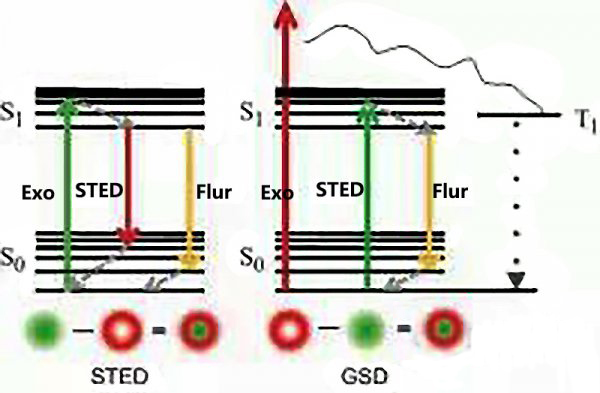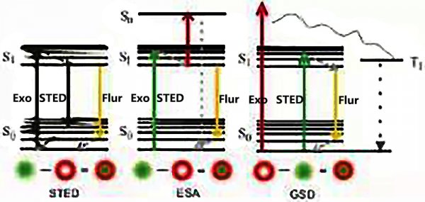 STED能級圖(左)和另一種超分辨的能級實現模式
