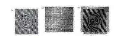 當把這幅圖縮小時,a和b的條紋不可見,但是c圖中的莫爾條紋仍能夠清楚地看到。