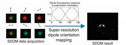 我們前面講述了STED是在空間維度將不同的點區分開,PLAM/STORM是在時間維度將不同的點分開。這也就啟發科學家們去思考能否在其他維度將距離很近的兩個點分開?2016年10月,北京大學席鵬課題組提出SDOM(Super-resolution Dipole Orientation Mapping microscopy)技術,將兩個距離很近的點在偏振維度分開從而實現了超分辨,該工作也得到了Nature Methods的亮點報道。