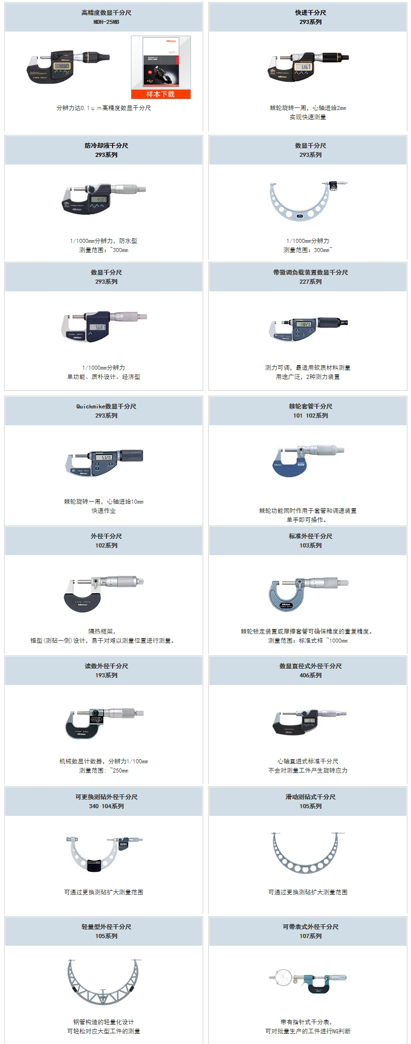 三豐標(biāo)準(zhǔn)外徑千分尺系列